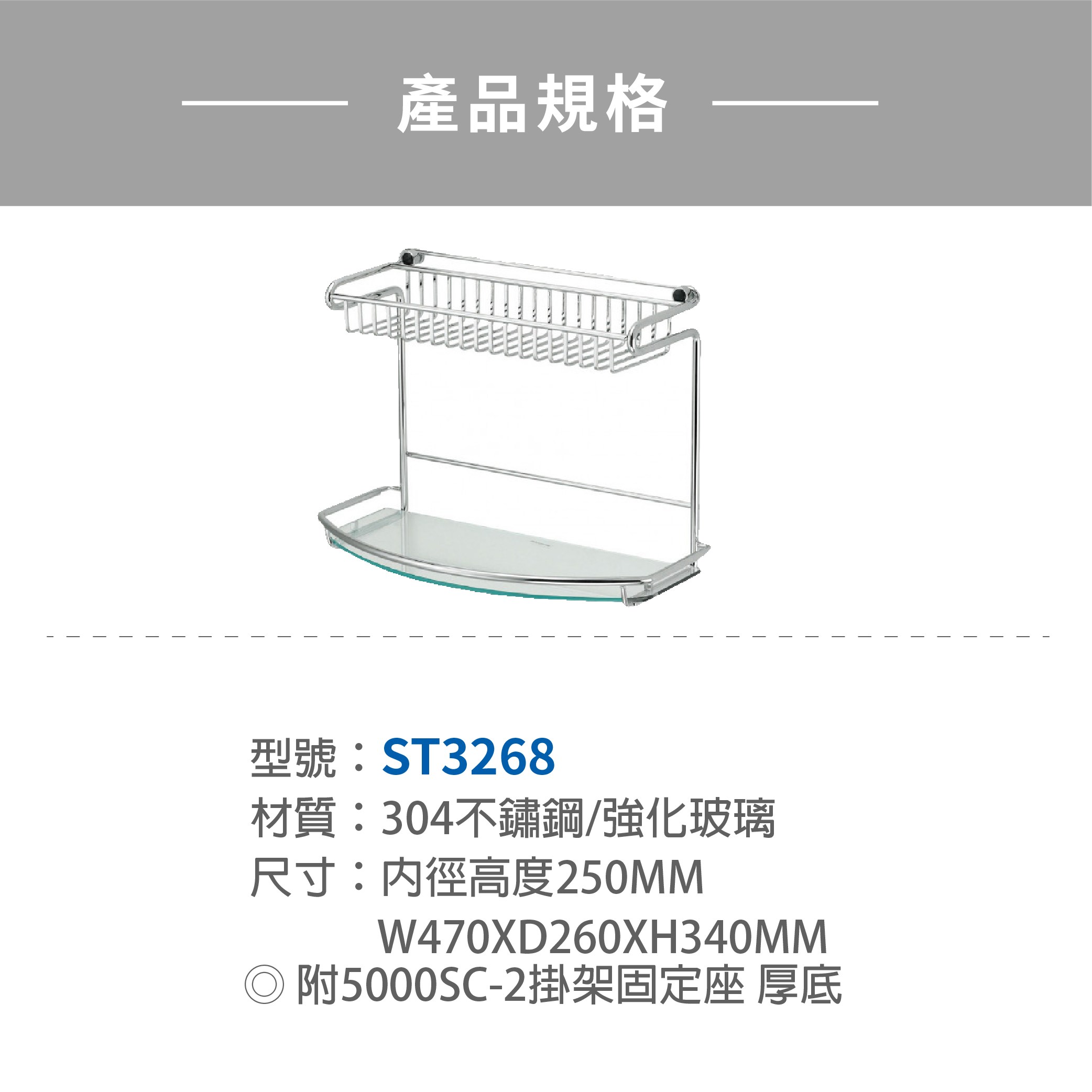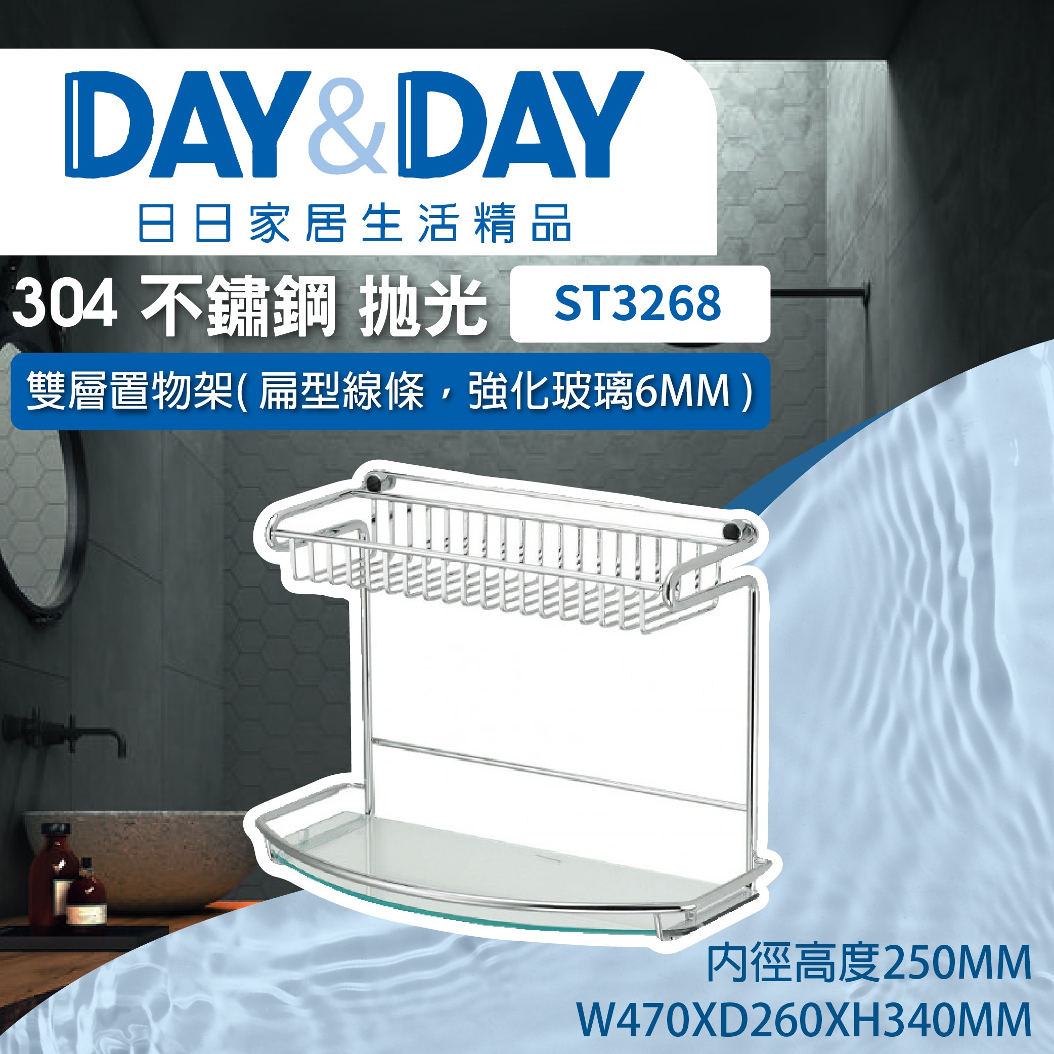DAY&DAY 不鏽鋼雙層置物架(扁型線條、強化玻璃6MM) (ST3268)