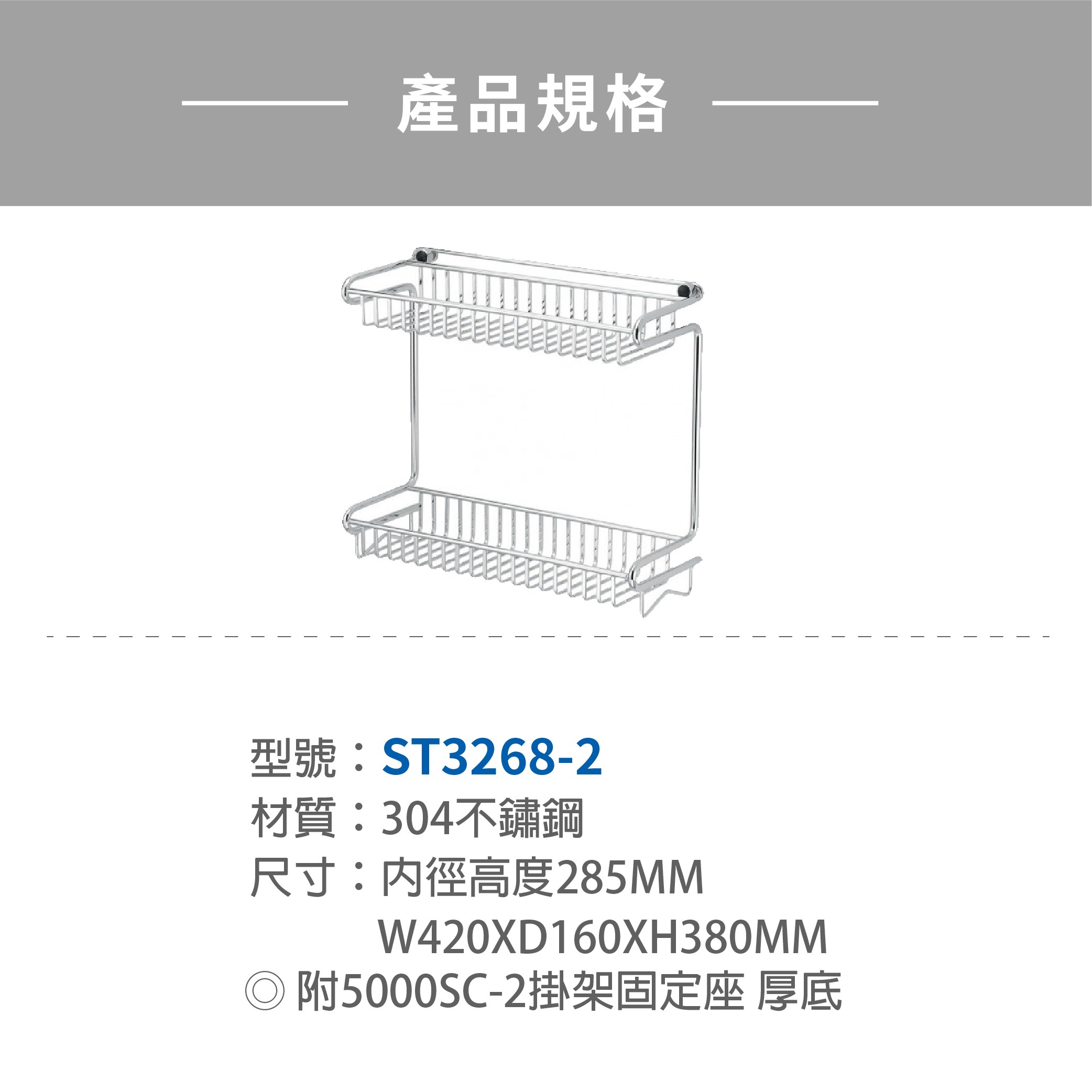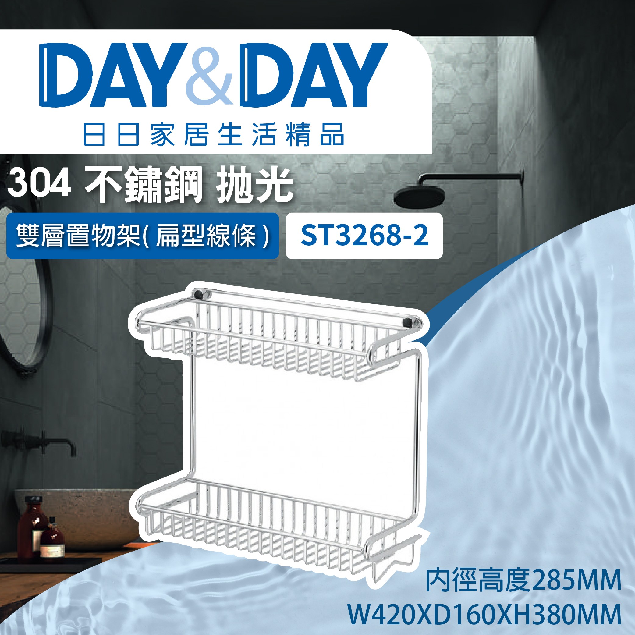 【DAY&DAY】日日衛浴 304不鏽鋼 雙層置物架(扁型線條)-ST3268-2