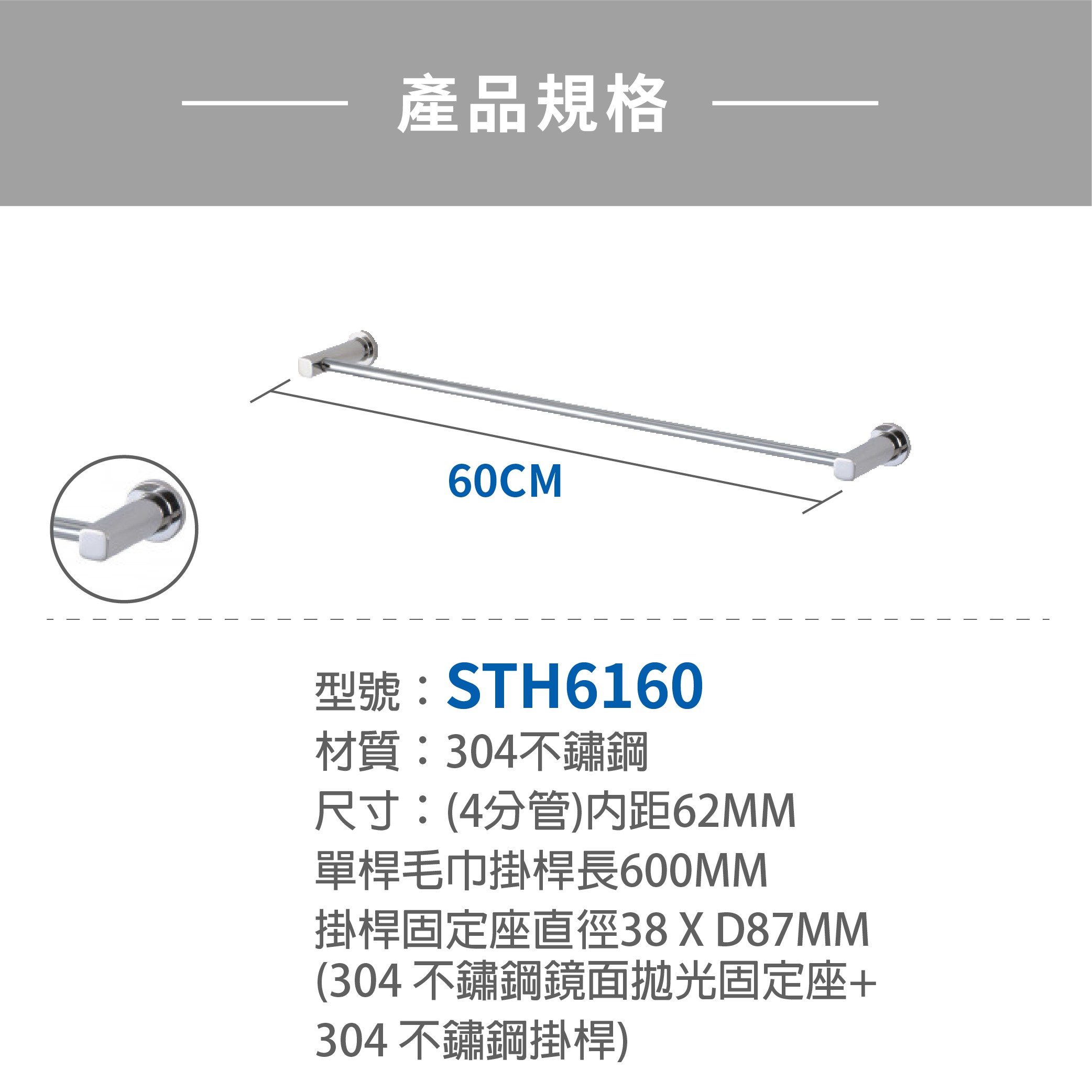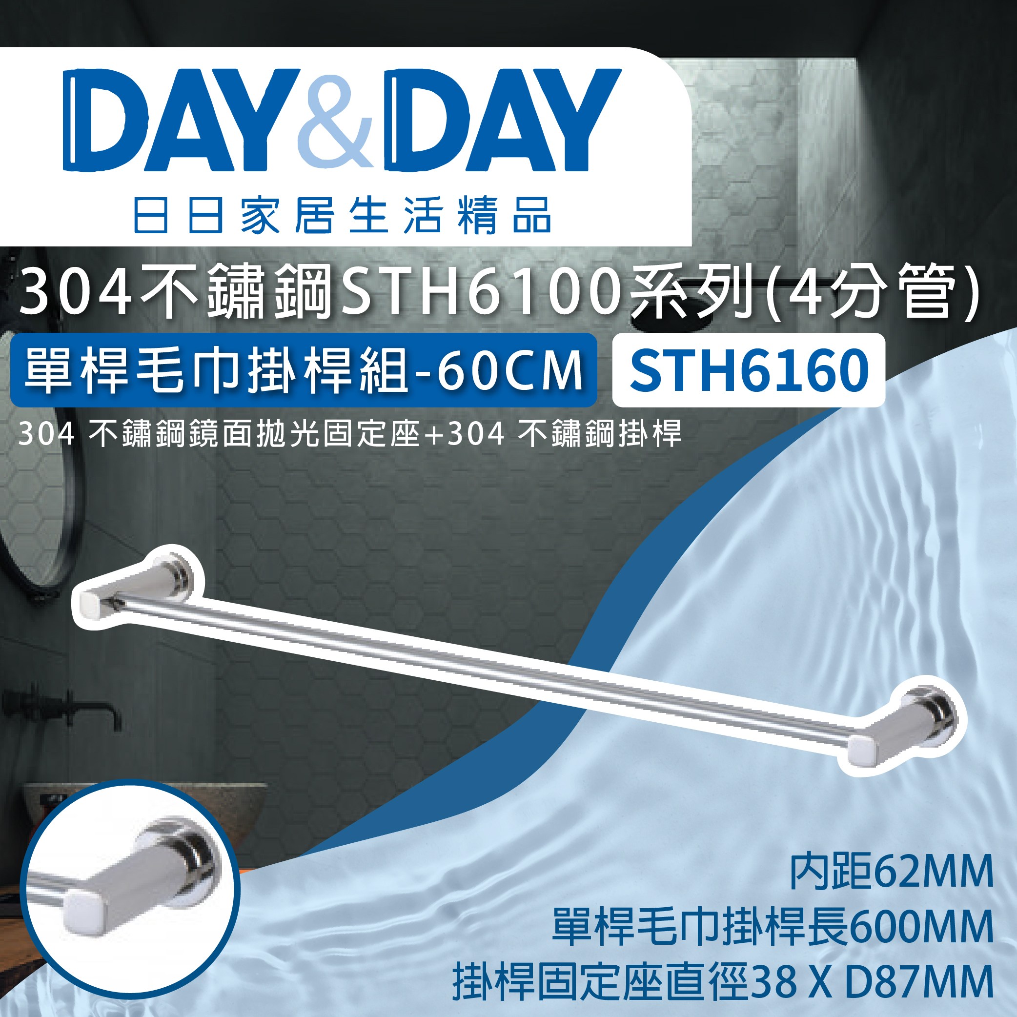 【DAY&DAY】日日衛浴 304不鏽鋼 STH6100系列 單桿毛巾掛桿組4分管 60CM-STH6160
