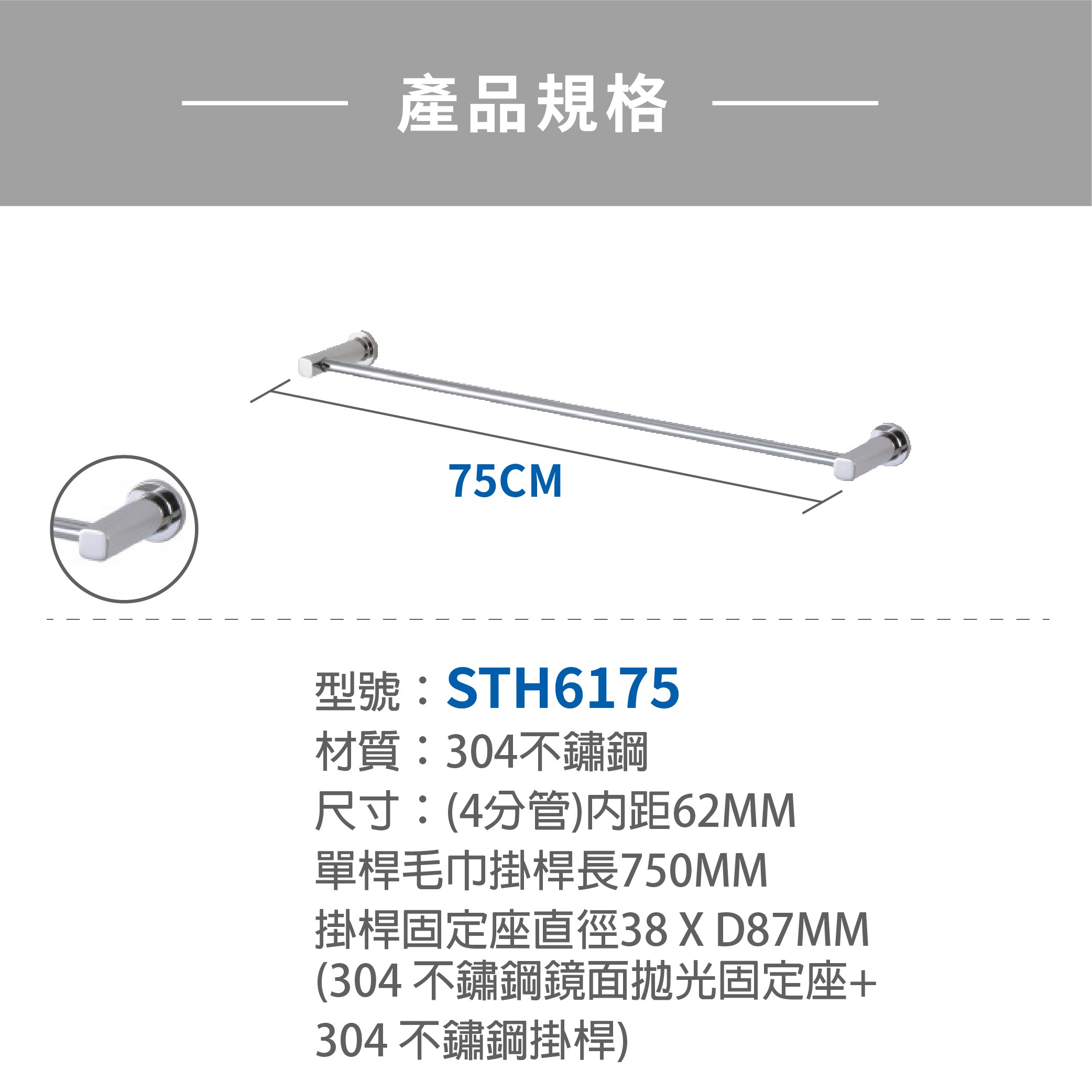 【DAY&DAY】日日衛浴 304不鏽鋼 STH6100系列 單桿毛巾掛桿組4分管 75CM-STH6175