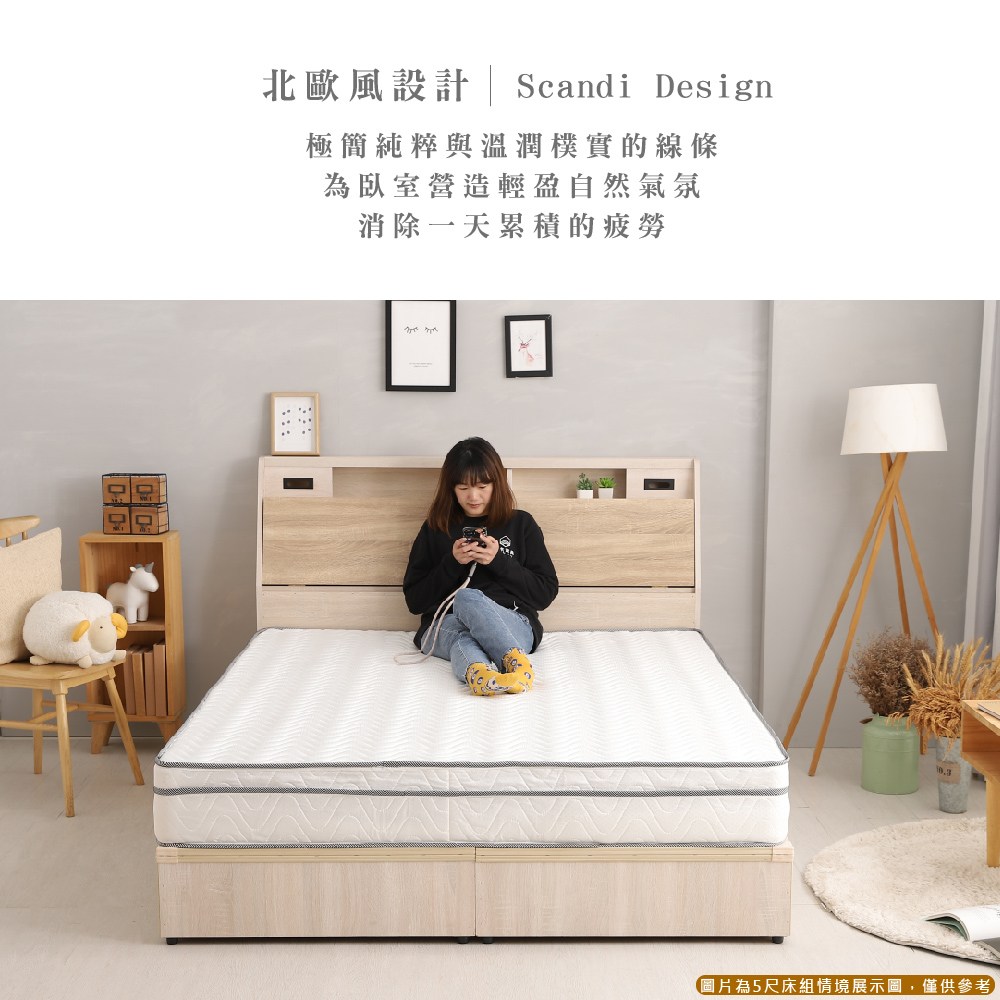 IHouse-沐森 房間2件組(插座床頭+床底) 雙人5尺古橡