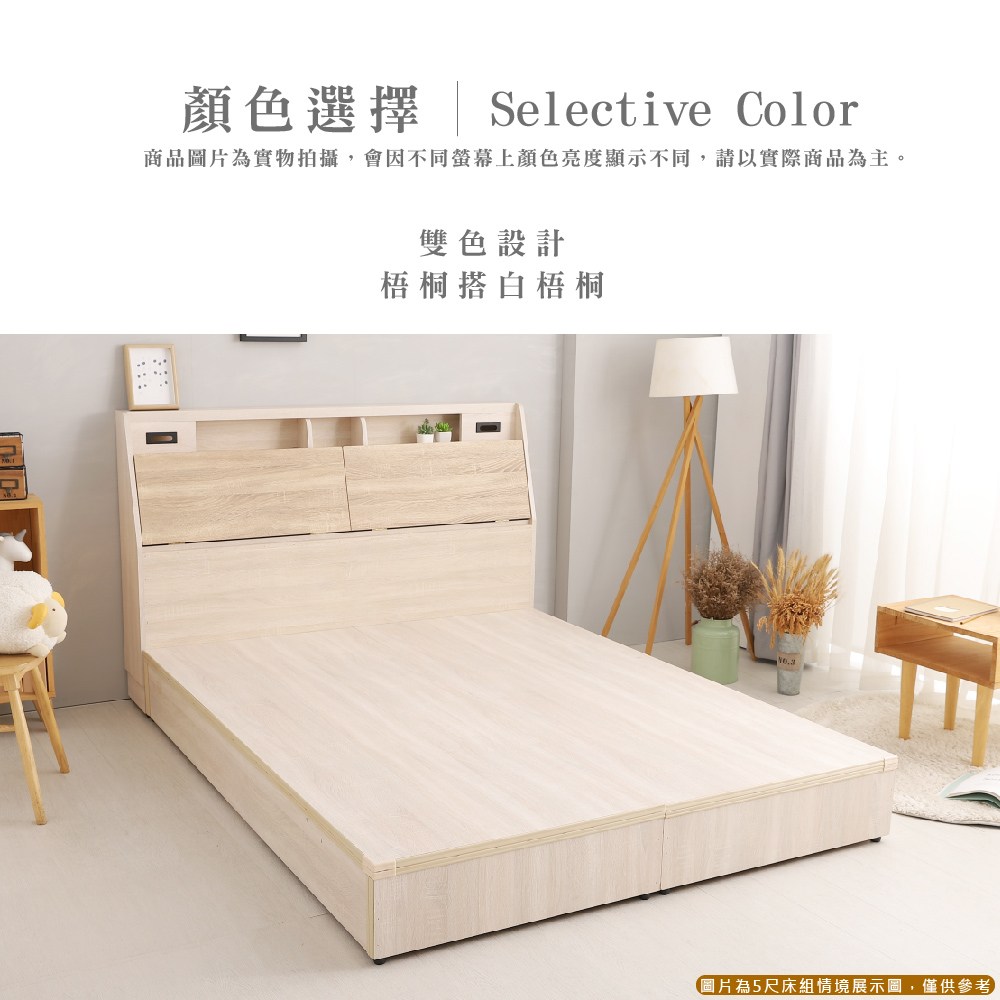 傢俱工場-吉米 MIT木心板床組 (插座床箱+床底) - 雙人5尺梧桐