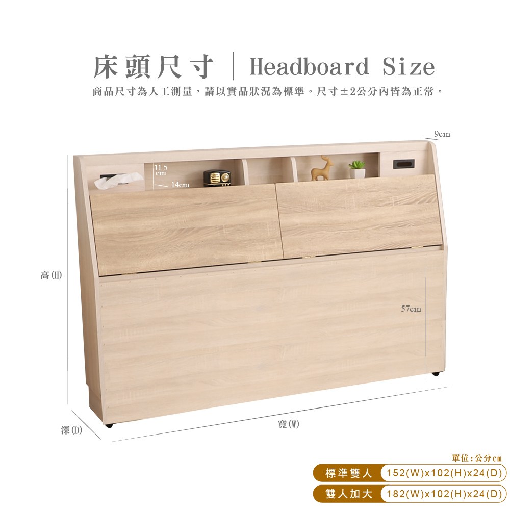 【藤原傢俬】貓抓皮靠枕收納床頭箱附充電插座雙人加大6尺(不含床架/底)雪松