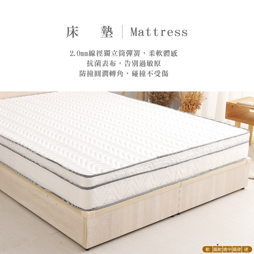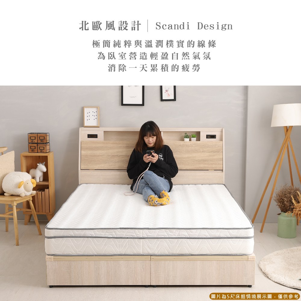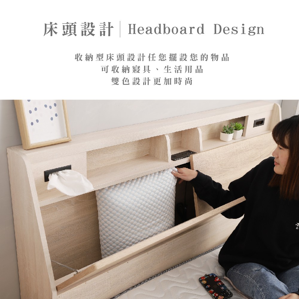 傢俱工場-吉米 MIT木心板床組 (插座床箱+床底+獨立筒墊) - 雙大6尺梧桐