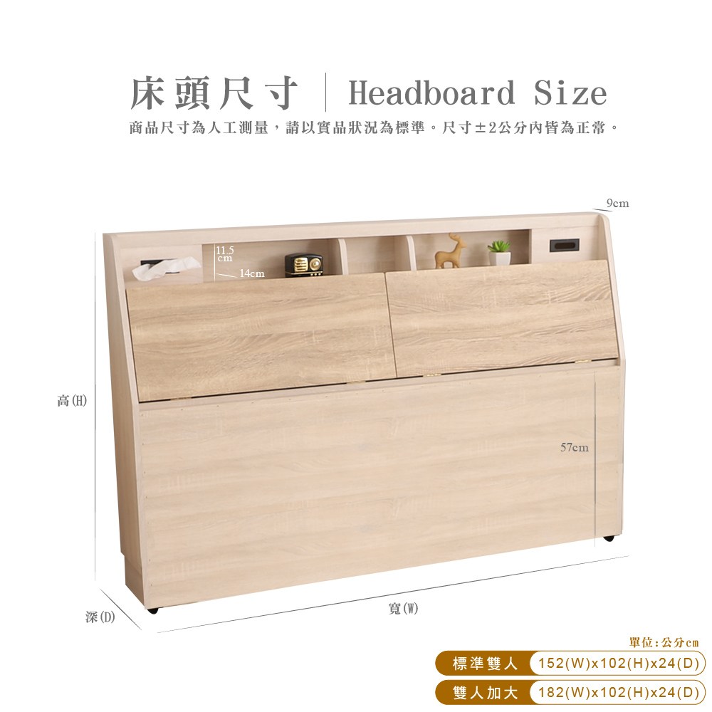【藤原傢俬】貓抓皮靠枕收納床頭箱附充電插座雙人加大6尺(不含床架/底)雪松
