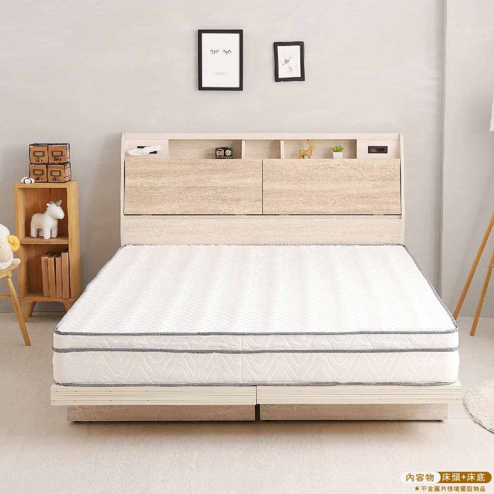 傢俱工場-吉米 MIT木心板床組 (插座床箱+床底+獨立筒墊) - 雙大6尺梧桐