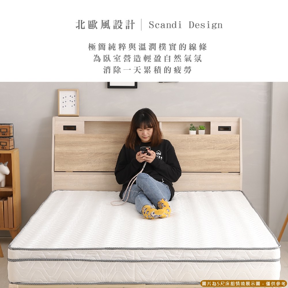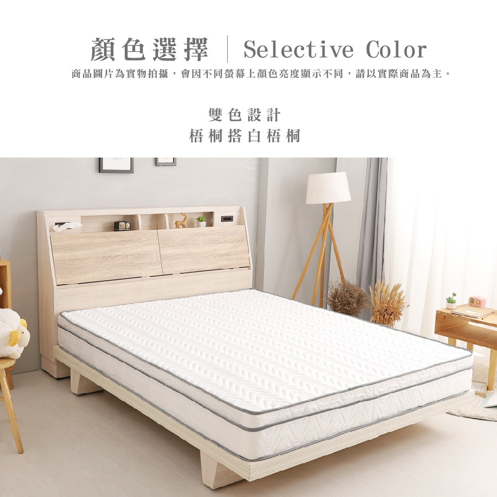 傢俱工場-吉米 MIT木心板床組 (插座床箱+床底+獨立筒墊) - 雙大6尺梧桐