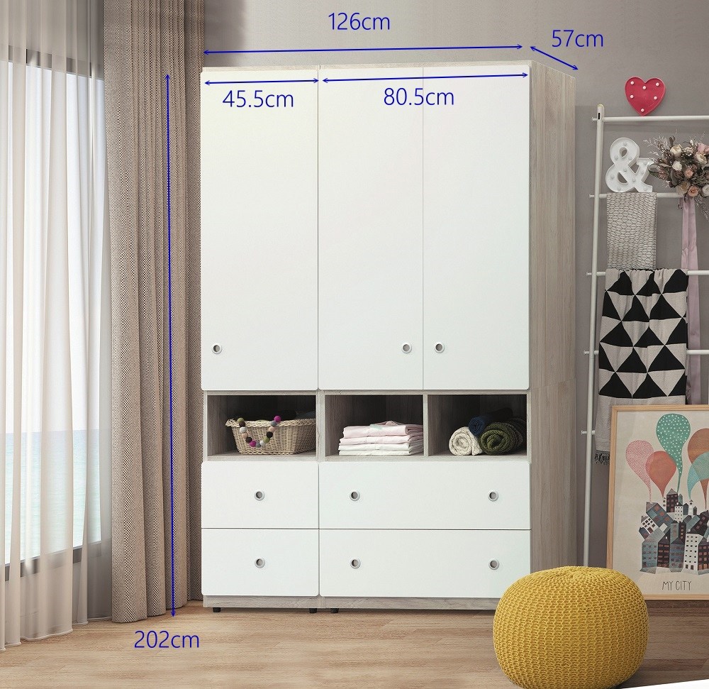 寬 126 公分 X 深 57 公分 X 高 202 公分。