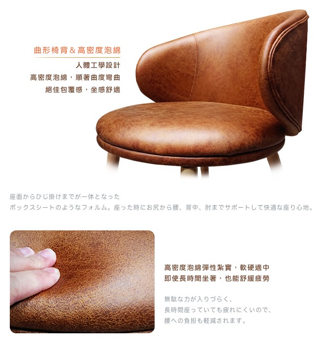 ◆ 曲形椅背,絕佳的包覆坐感