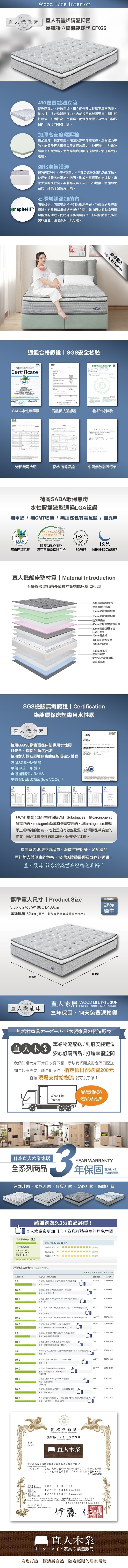 直人木業-CF026特大雙人-直人石墨烯調溫抑菌長纖獨立筒機能6/7尺床墊