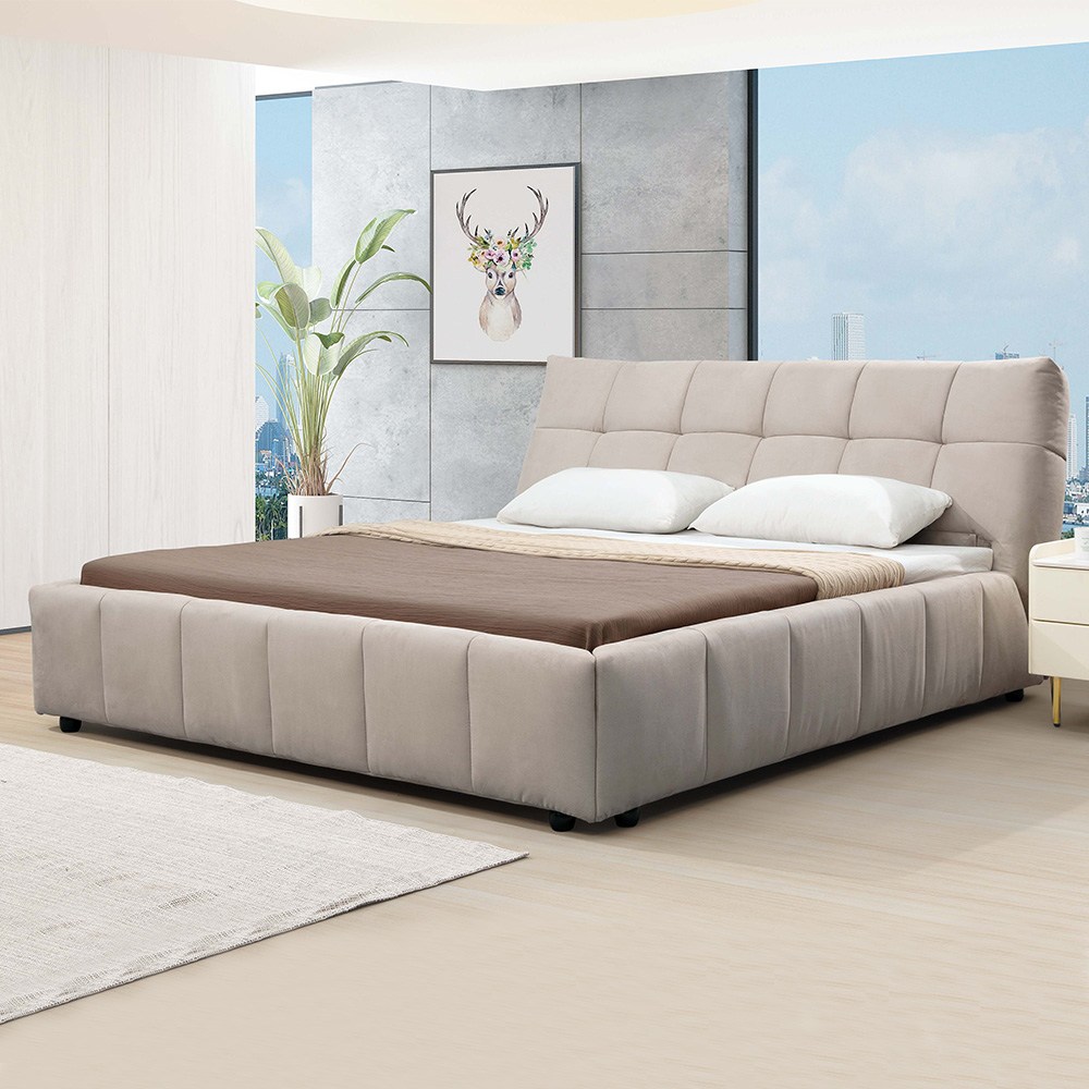 柏蒂家居-派翠5尺雙人布面實木床架(兩色可選)