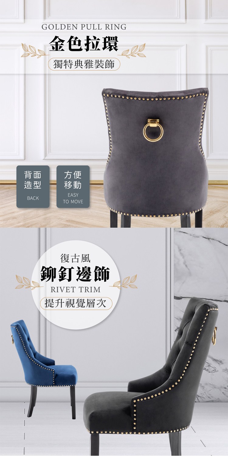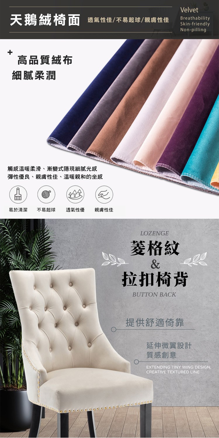 台灣與歐美同步販售、美規設計,低調而又不失華麗的天鵝絨座面,菱格紋配拉扣椅背提供舒適倚靠,