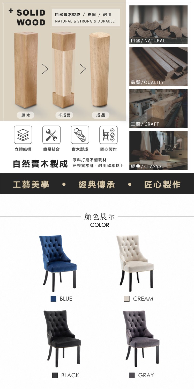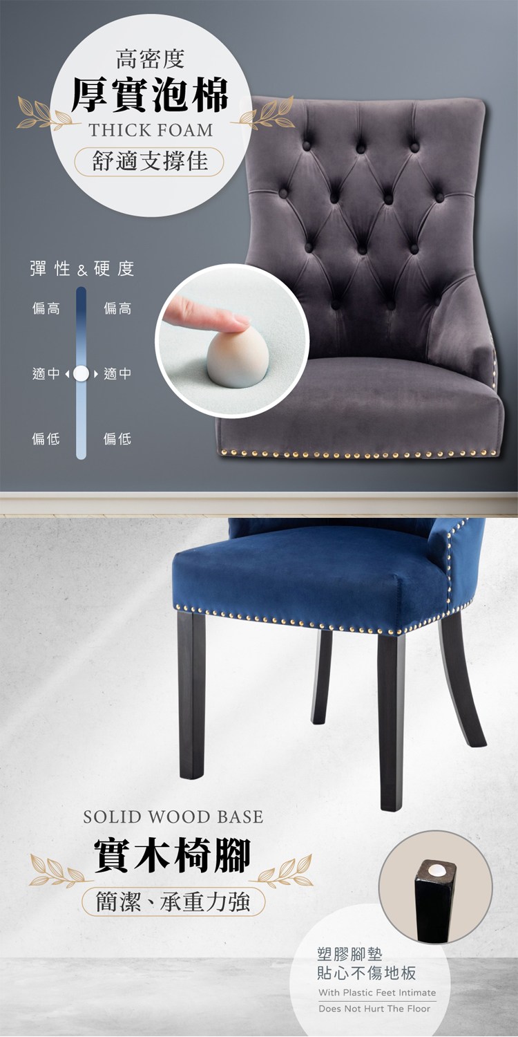 厚實的高密度泡棉,舒適支撐佳,搭配簡潔線條實木椅腳承重力強,配有塑膠的腳墊、貼心不傷地板,