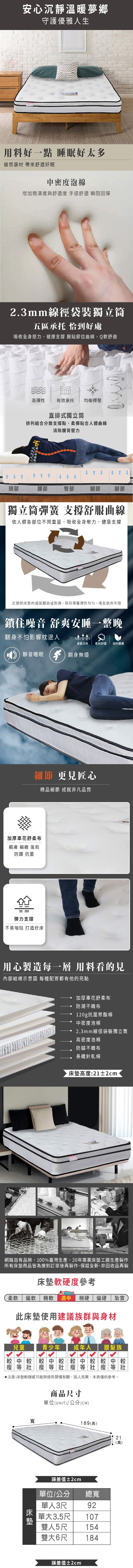 《新之森林》雅典多支撐蜂巢款獨立筒床墊-雙人加大6x6.2尺