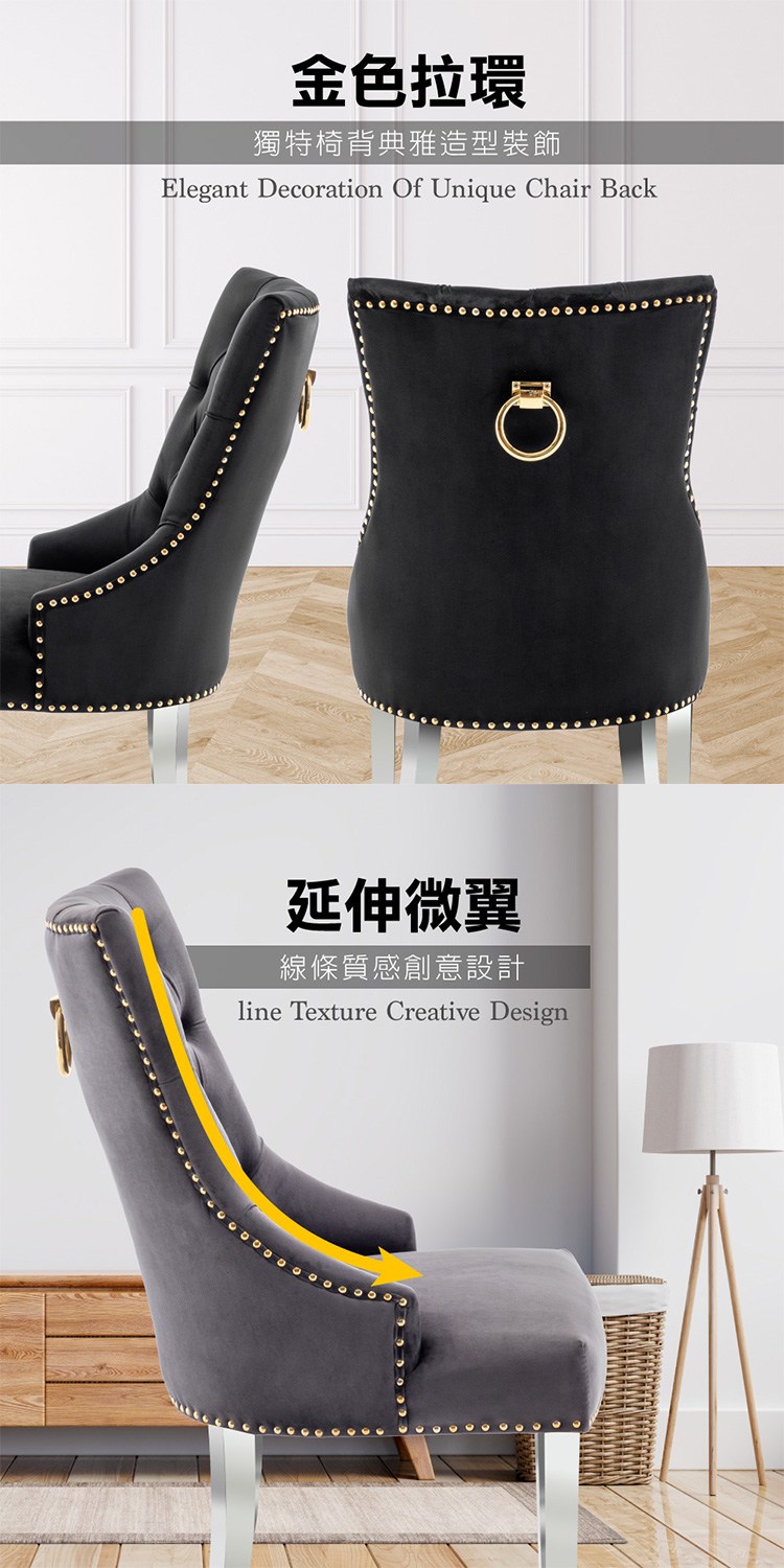 * 搭配簡潔線條鍍銀椅腳承重力強