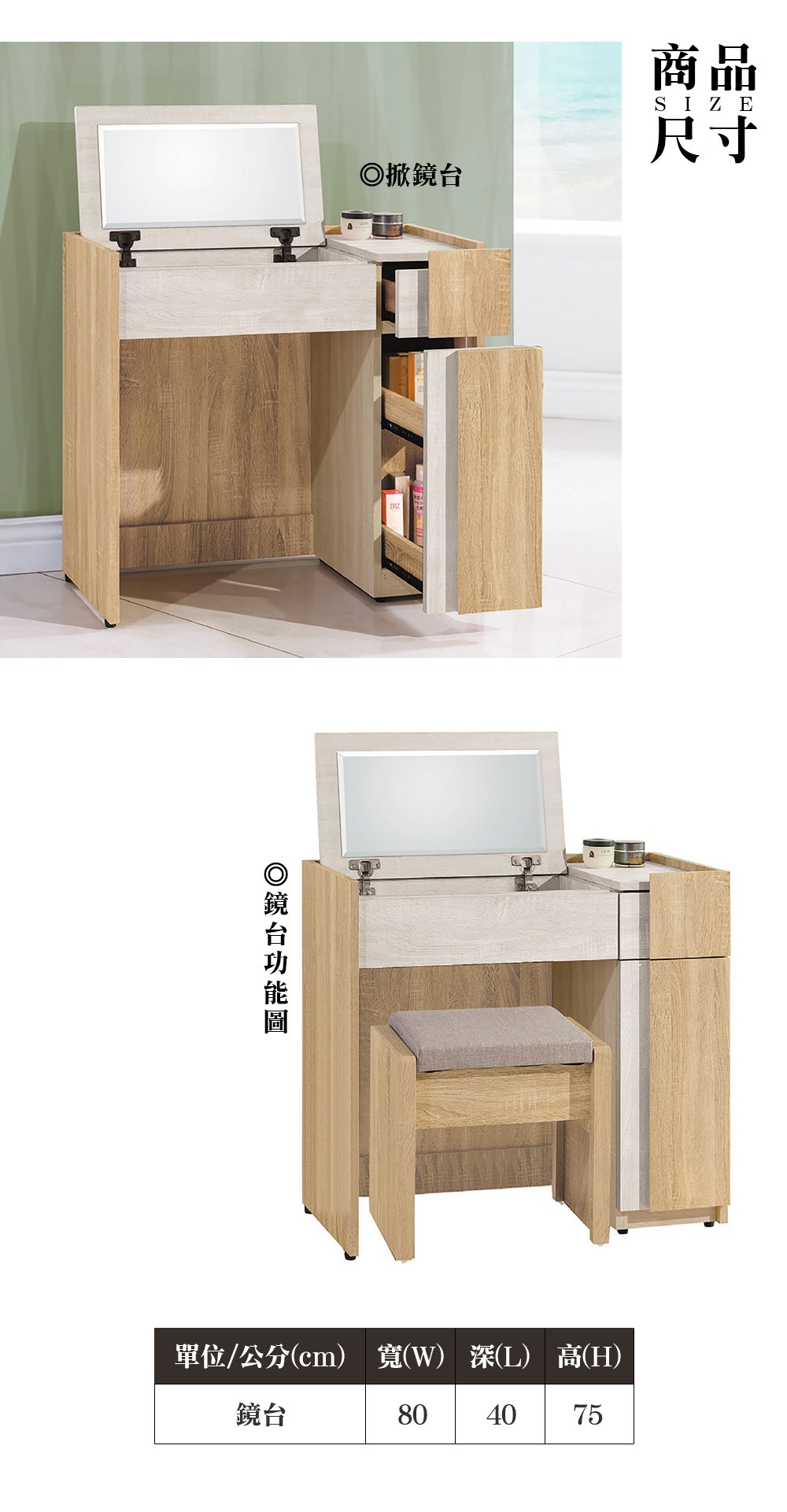 喬圓2.5尺掀式鏡台(含椅)