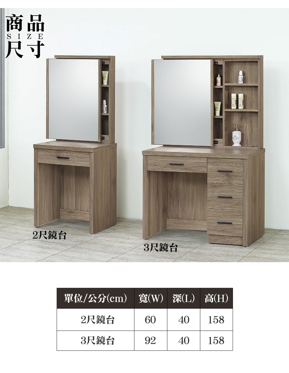 MUNA家居 6003型2尺鏡台/化妝台(共兩色)(不含椅) 60X40X158cm