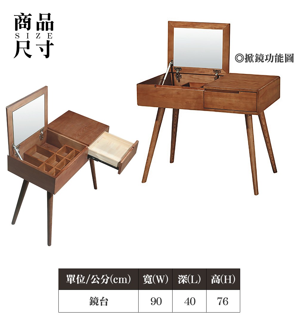 AS雅司-Beautiful化妝台-含椅-90*40*76cm
