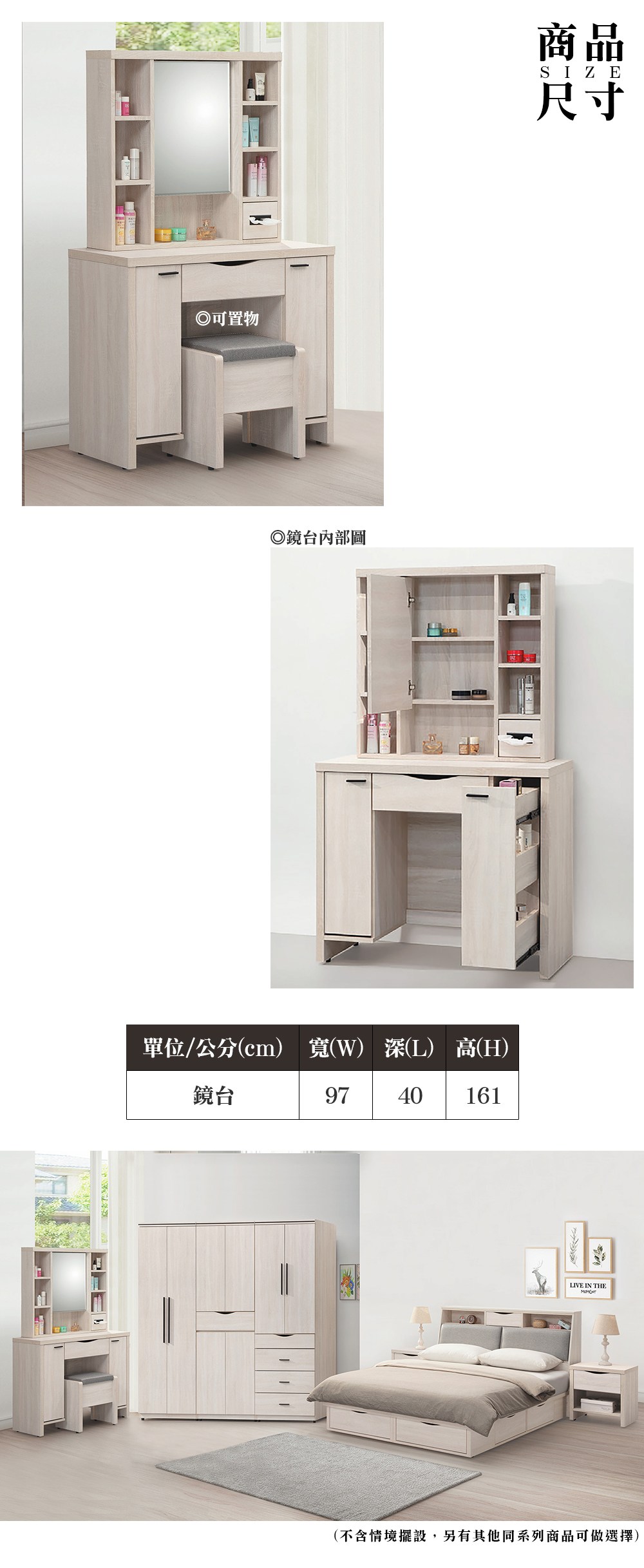 美背處理、化妝椅可置物、鏡框左開門
