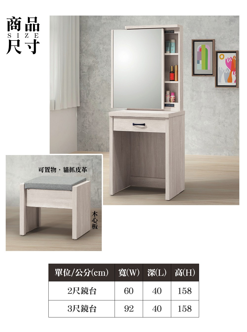 【顛覆設計】木雅加2尺化妝鏡台(含椅)