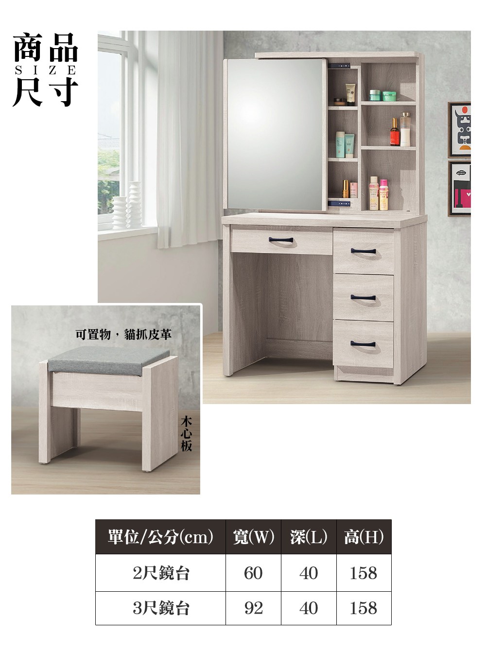 格瑞斯3.3尺掀鏡式化妝鏡台組
