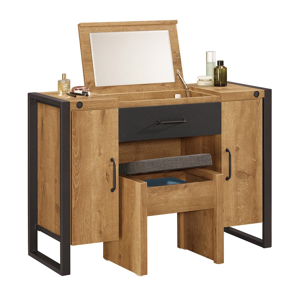 歐登化妝台 附椅子黃金橡木色