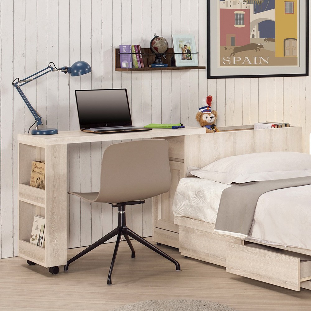 林氏木業北歐多功能單人加大4尺120x200收納床架CD2A-原木色-(H014340102)