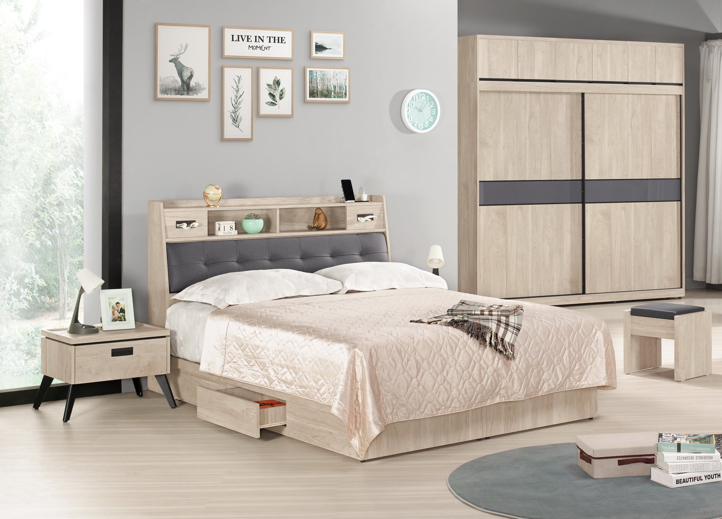 灰橡5尺夜燈床頭片 標準雙人 床頭背板 床片【275B0952】Leader傢居館