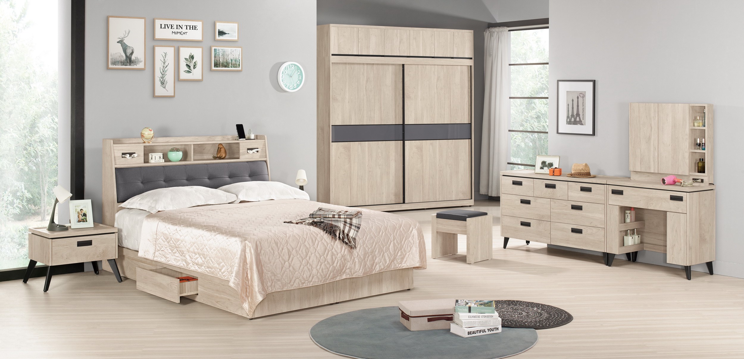Homelike 喜家居雙人加大6尺六抽屜床組-原木色(2531)