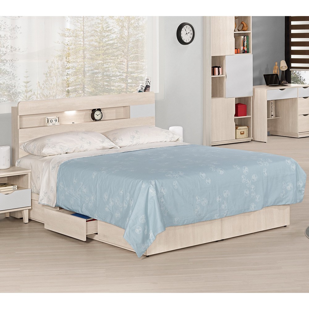 【IHouse】日系夢幻100 夜燈插座 房間2件組(床片+強化底)-雙人5尺