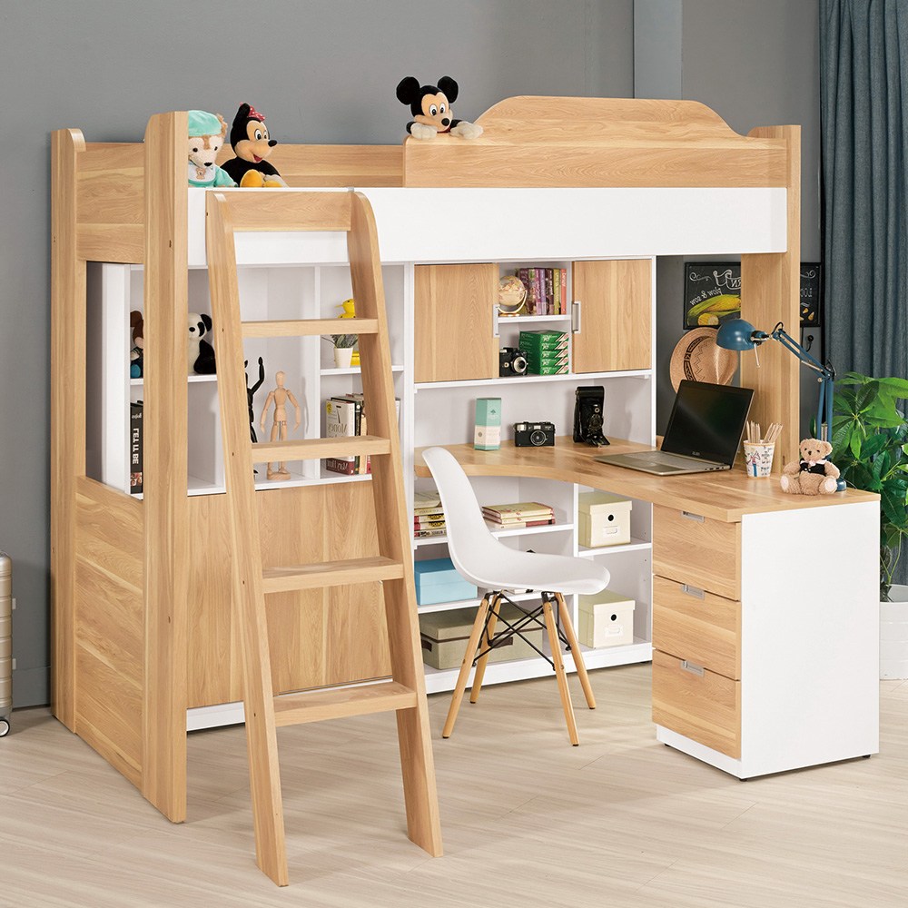 Boden-貝爾3.5尺單人多功能高層床組(床架+收納櫃+書桌+衣櫃)