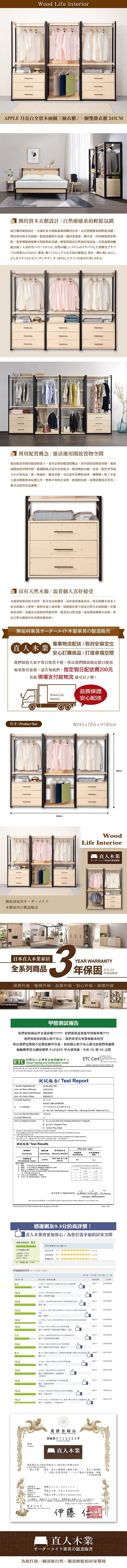 直人木業-APPLE月亮白全實木工業風243公分兩個三抽一個雙掛衣櫃