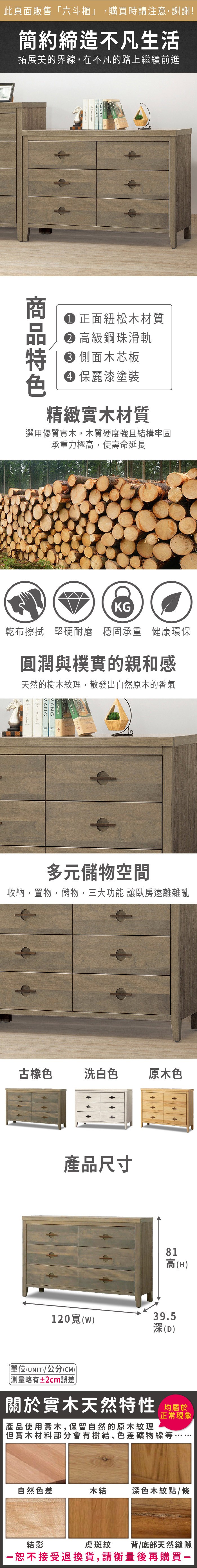 文創集 克朵3.9尺實木六抽斗櫃-117x50x76cm免組
