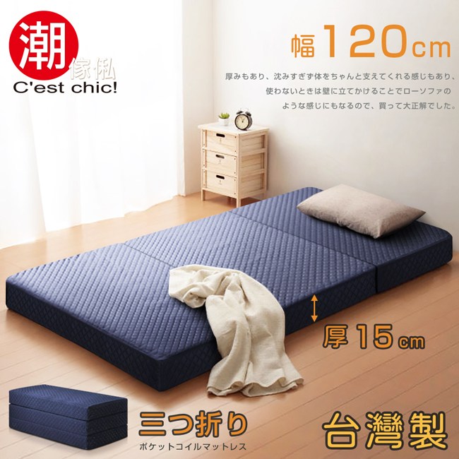 【C'est Chic】二代目日式三折獨立筒彈簧床墊-幅120cm(加厚)-藍