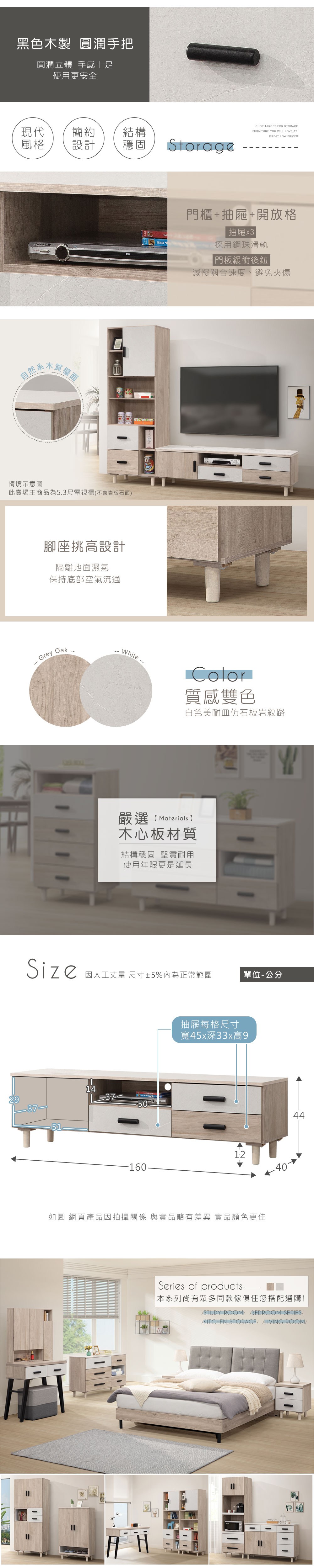 【唯熙傢俱】紀薇橡木雙色5尺電視櫃