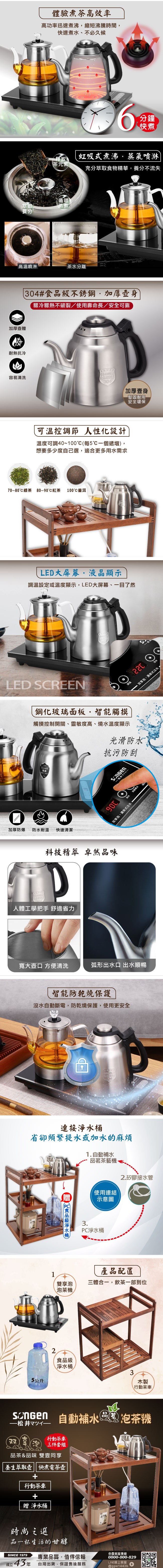 【日本SONGEN】松井雙享泡自動補水品茗泡茶機(SG-916TM-A2)〈茶車套組〉