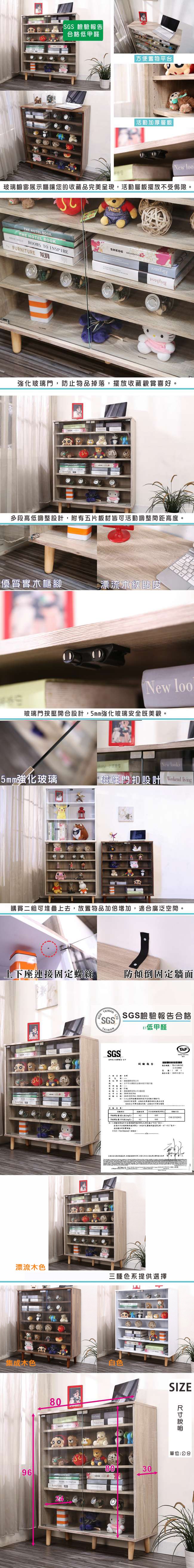 BuyJM MIT低甲醛寬80cm可堆疊六層強化玻璃門實木腳展示櫃/置物櫃/書櫃漂流木色