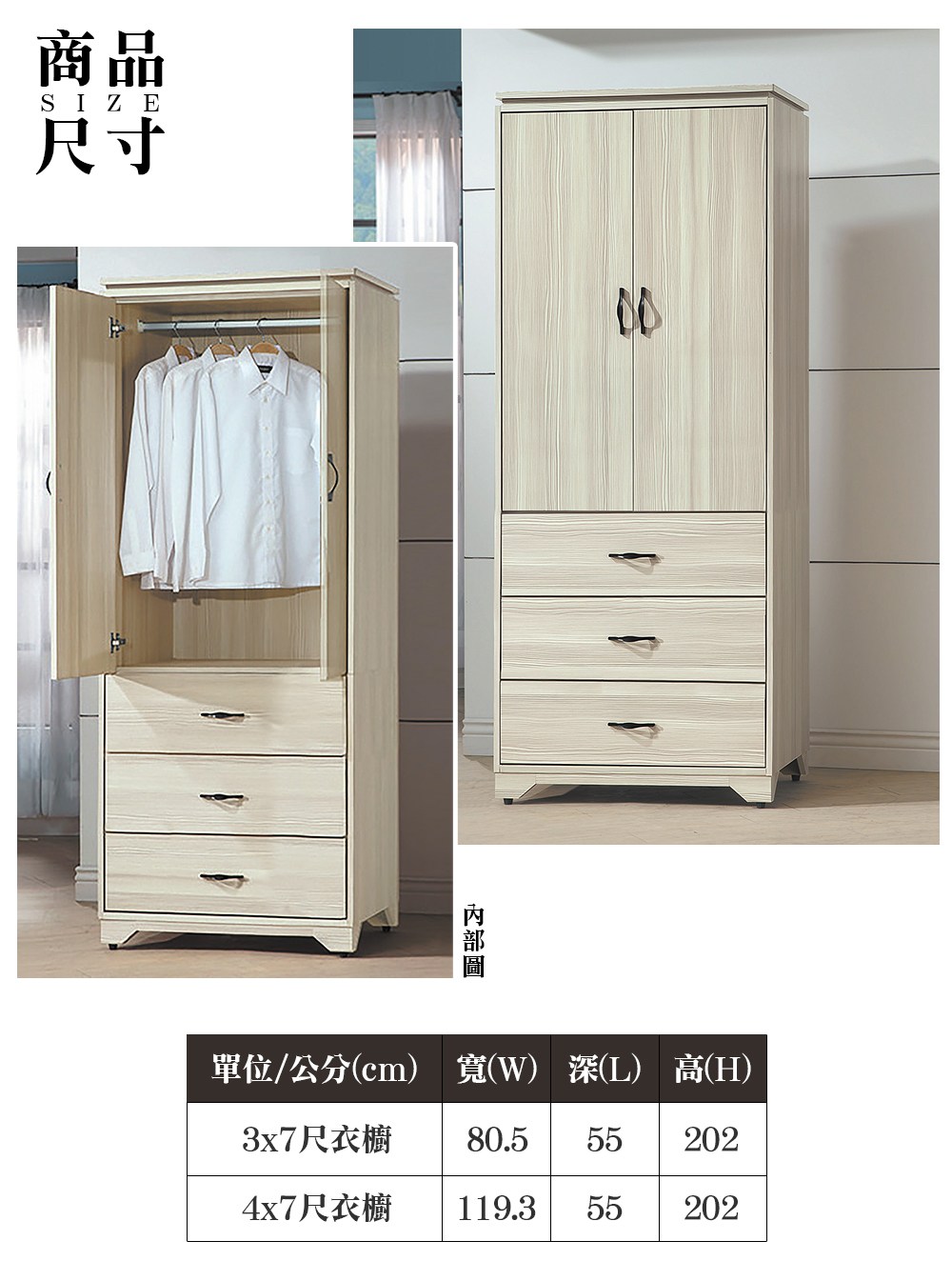 AS雅司-仲英3×7尺衣櫥-79.1*56.3*200cm