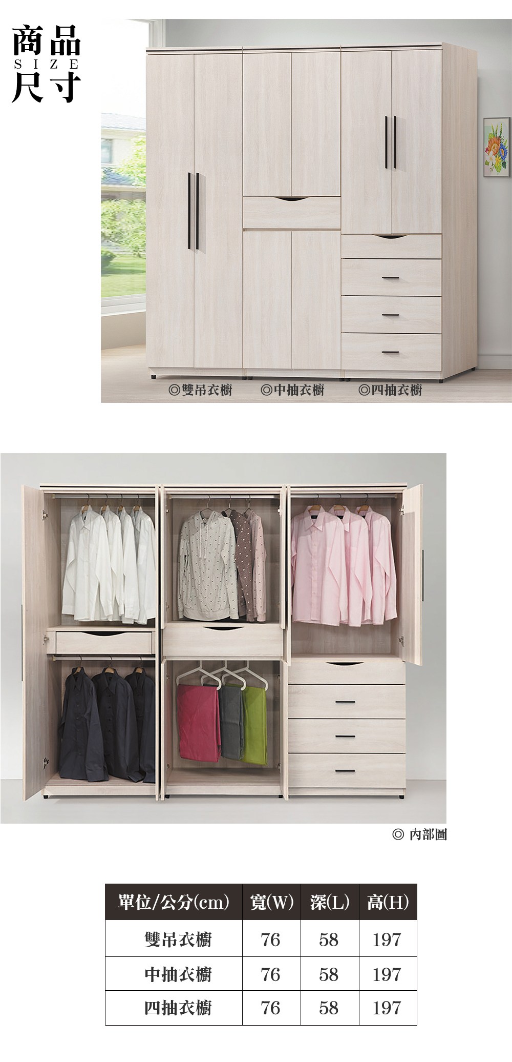 【顛覆設計】樂雅白雲橡色7.6尺衣櫥組合