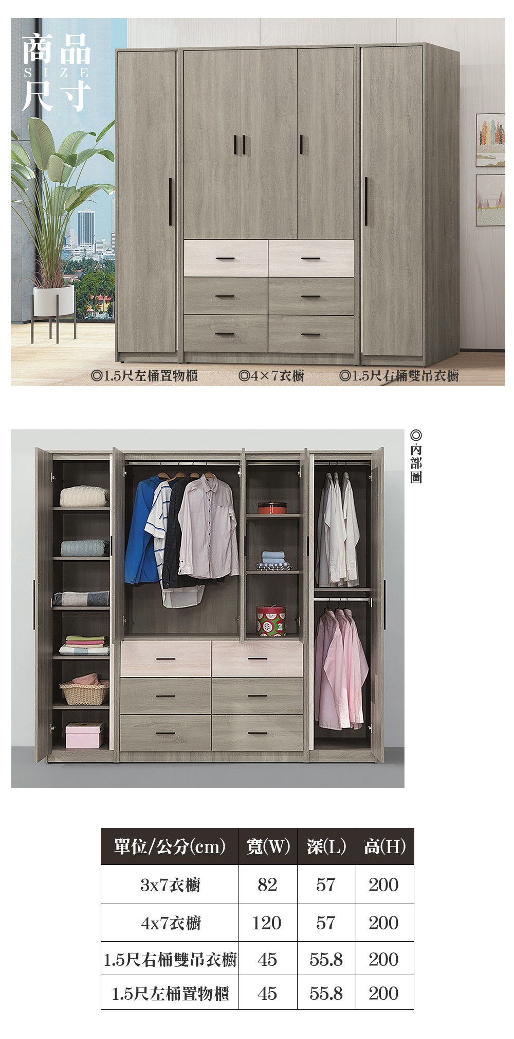 薩斯4X7尺拉門木質收納衣櫃/衣櫥(4開3抽加側邊櫃/2色任選)北歐橡木