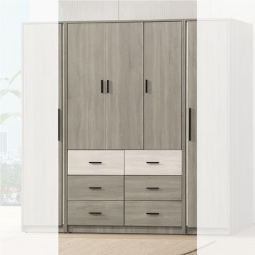 文創集-南亞塑鋼 安格 南亞塑鋼4尺三開門六抽衣櫃/收納櫃-121.2x60.4x200cm免組