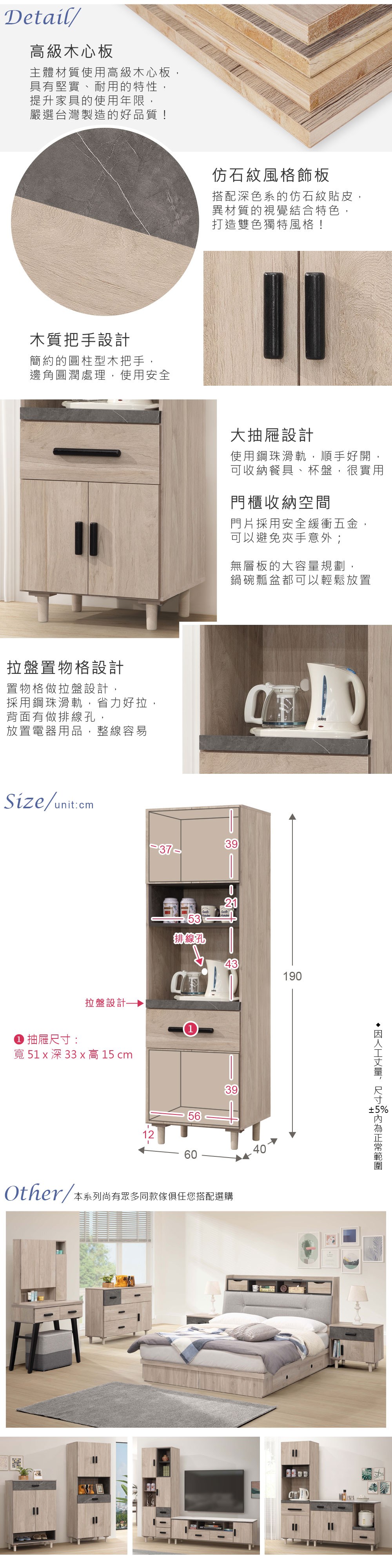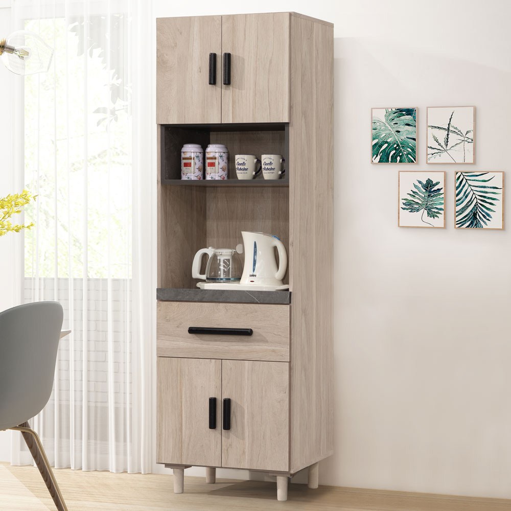 Boden-潔妮2尺收納高餐櫃/碗盤櫃/拉盤電器櫃-60x40x180cm