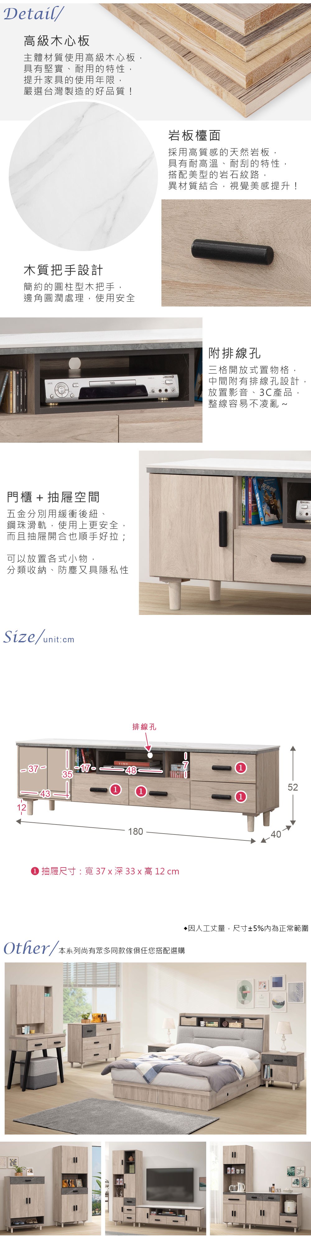 Boden-妮絲6尺二門二抽石面電視櫃/長櫃/視聽櫃-181x42x56cm