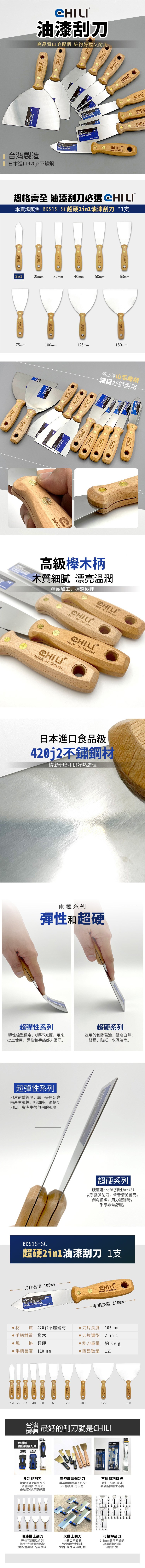 CHILI 32mm/1.2吋-長木柄 低火花黃銅刮刀-平刃 BBS-32