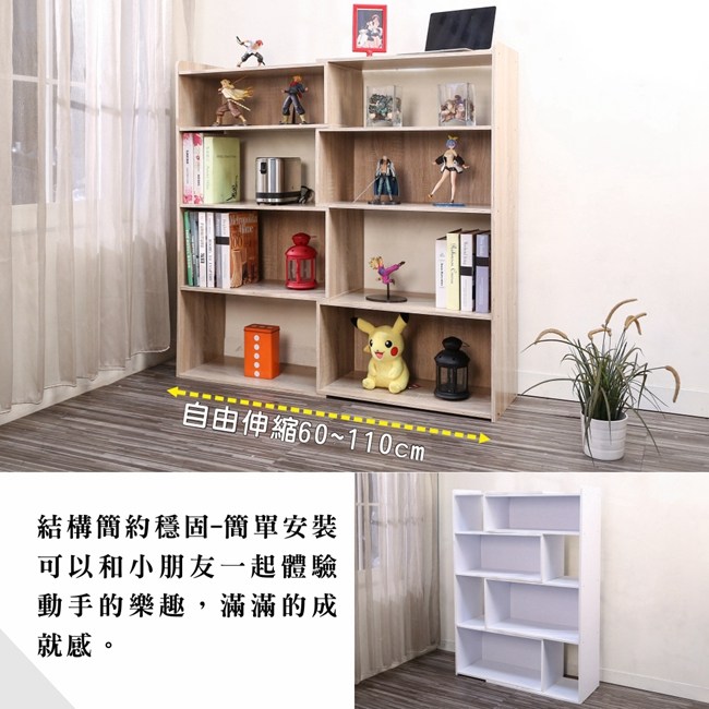 空間規劃隨著居住者的生活前進而改變,家具也要像變形金剛能伸縮轉彎才能跟上生活的節拍。這個伸縮收納櫃,配合擺放的空間尺寸,跟訂製家具一樣,不浪費一公分;還能擺在轉角作L型開放櫃,物品好拿取,解決角落收納問題。收納櫃能伸縮,改變一成不變生活。生活消耗品一次買多了,隨意拉開,調節寬度、角度,養成整齊收納習慣,節省時間讓生活井然有序,輕鬆創造各種收納空間。此外,板材使用低甲醛板材,讓您用得安心。如此多功能的收納櫃,是家中不可或缺之物。