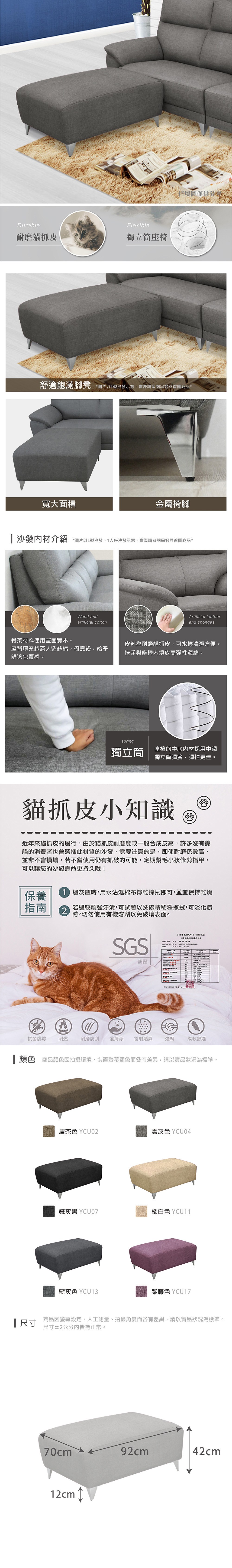 【IHouse】大麥克 飽滿回彈貓抓皮沙發組合 4人座+腳椅
