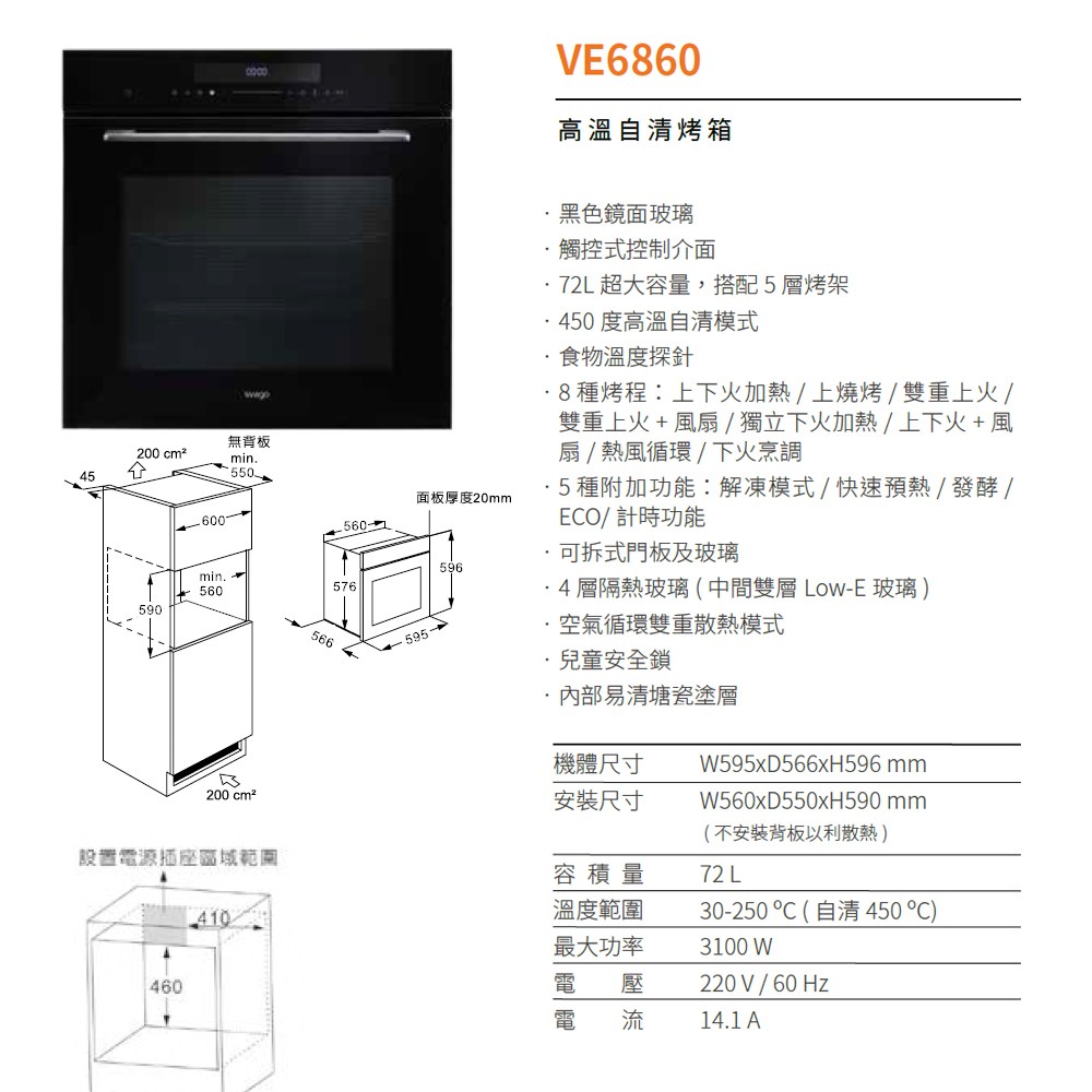 【得意家電】義大利 svago 享樂 VE6860 食物探針+高溫自清烤箱(72L) ※熱線07-7428010