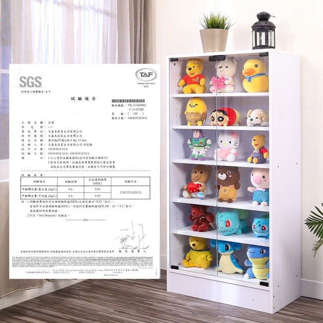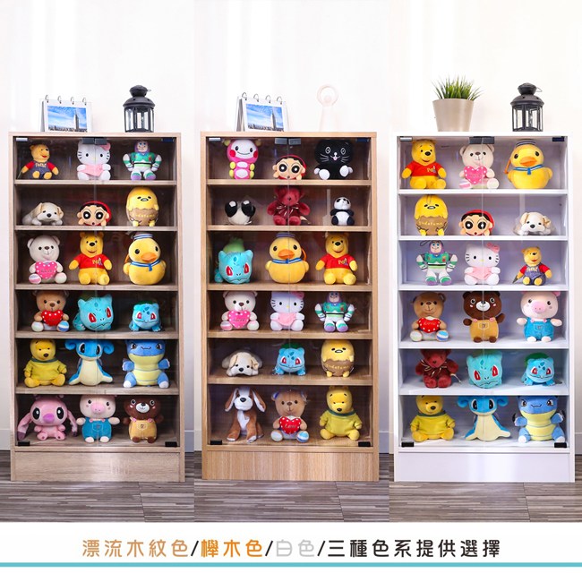 讓您的公仔、玩偶及收藏們有個家吧,放到展示櫃裡擺放觀賞,朋友來時可以一同分享收藏,同時也可以裝飾家中的角落。4片活動層版可微調層板高度,讓擺放不受限,也可將層板整個拿掉,擺放更大的物品。按壓式玻璃門採用5mm強化玻璃,按壓即可開關門,方便使用,不用擔心灰塵髒汙附著,透明玻璃門讓收藏品一目了然,賞心悅目。此外整體板材使用低甲醛P2板材,讓您用的安心。不只可以放玩具公仔模型也可以當書櫃用或放小朋友的娃娃,如此多功能的櫃子,是家中不可或缺的好物。