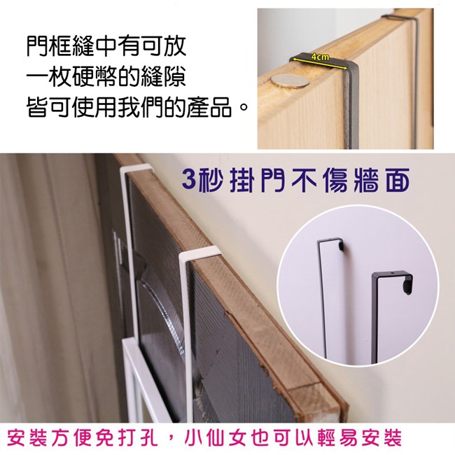 .長掛勾掛在門後即可,牆面不用另打洞釘釘子。