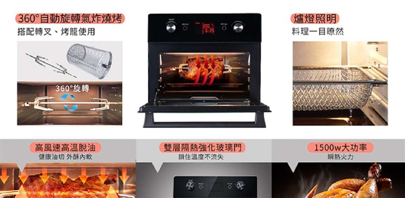 5.360°轉叉、轉籠氣炸烘烤真便利雙層隔熱強化玻璃門